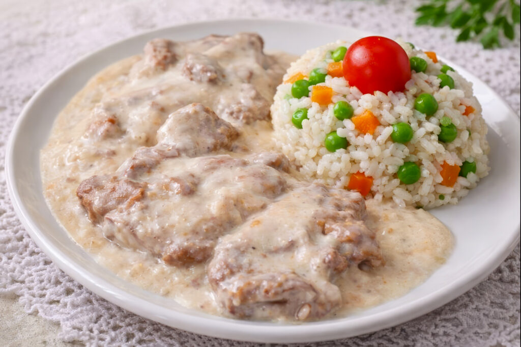 Ez a fogás tipikus otthoni ebéd, kevés alapanyaggal, mégis telt ízekkel. A hús előpirítása és a hagymás rétegezés adja meg az alapját, a végén a tejfölös habarás pedig selymessé teszi a szaftot. Kuktában gyorsabb, de hagyományos lábosban is jól elkészíthető, csak több időt igényel.