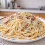 Végül beleforgatjuk a kifőtt spagettit, és egy-két perc alatt összemelegítjük.